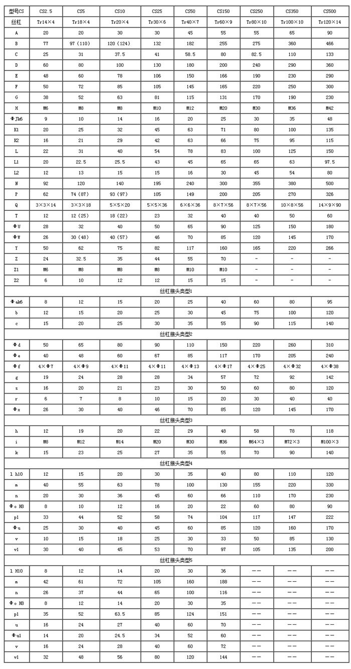 CS方形蝸輪絲杠升降機(jī)主要性能參數(shù)表